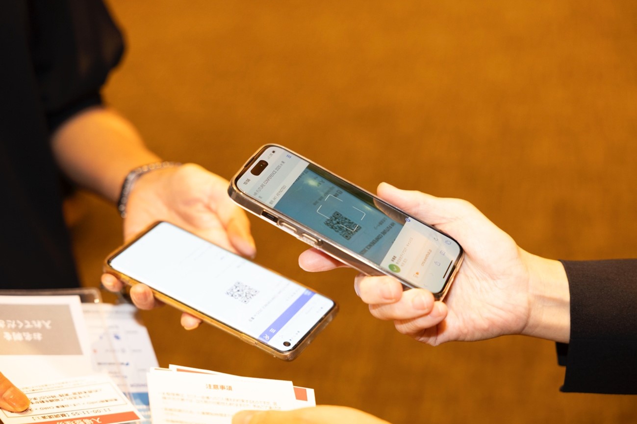 各セッションでのQRコード対応やノベルティ・アンケート配布など、時間帯ごとに異なる対応が求められる中、シーバー(無線機)によるダブルチェック体制を構築。緻密な連携とリアルタイムの報告体制により、ミスや遅延のない円滑なイベント進行を実現しました。