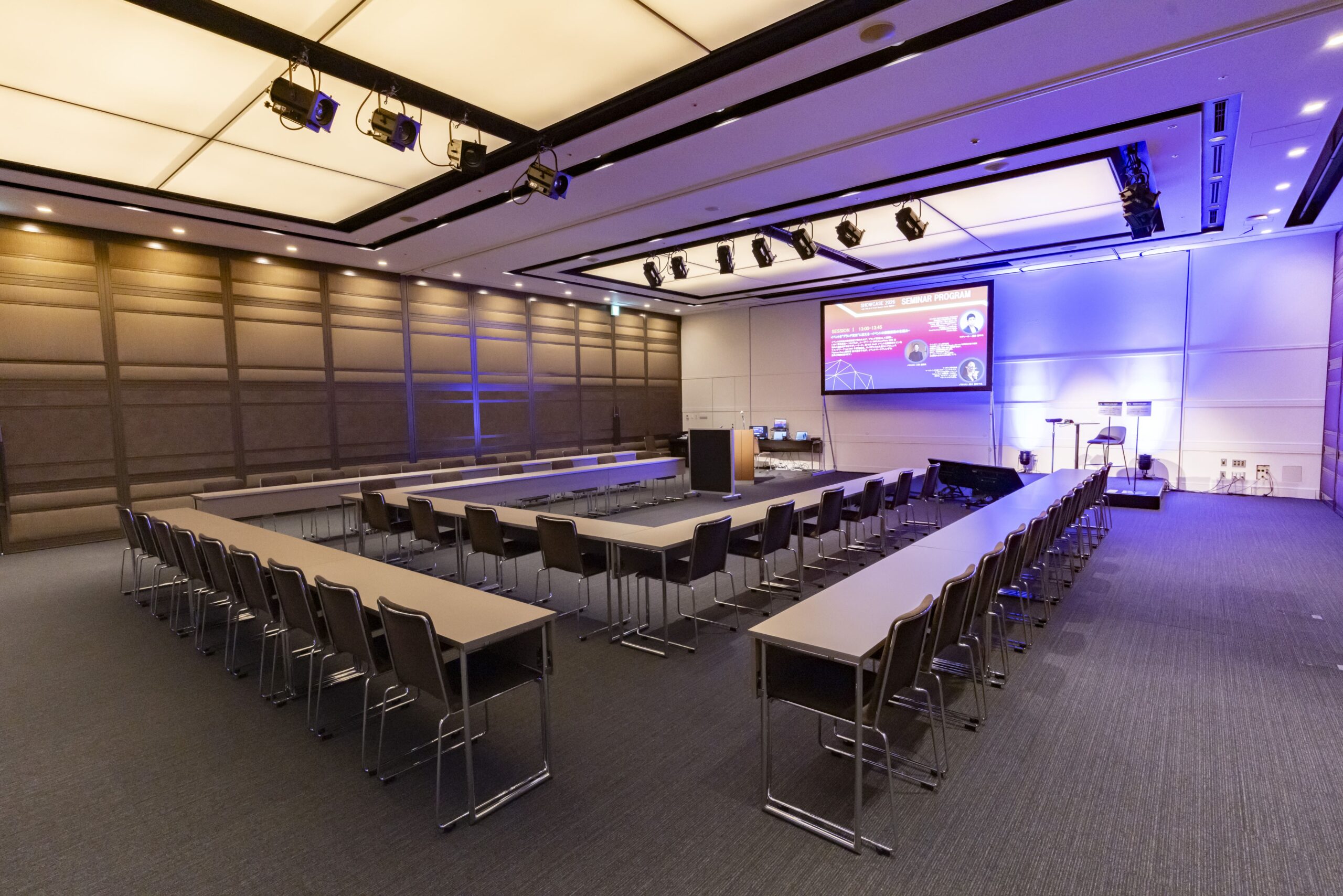 セミナーや分科会、サテライト会場など実際のご利用をイメージしやすいレイアウトをご覧いただきました。
