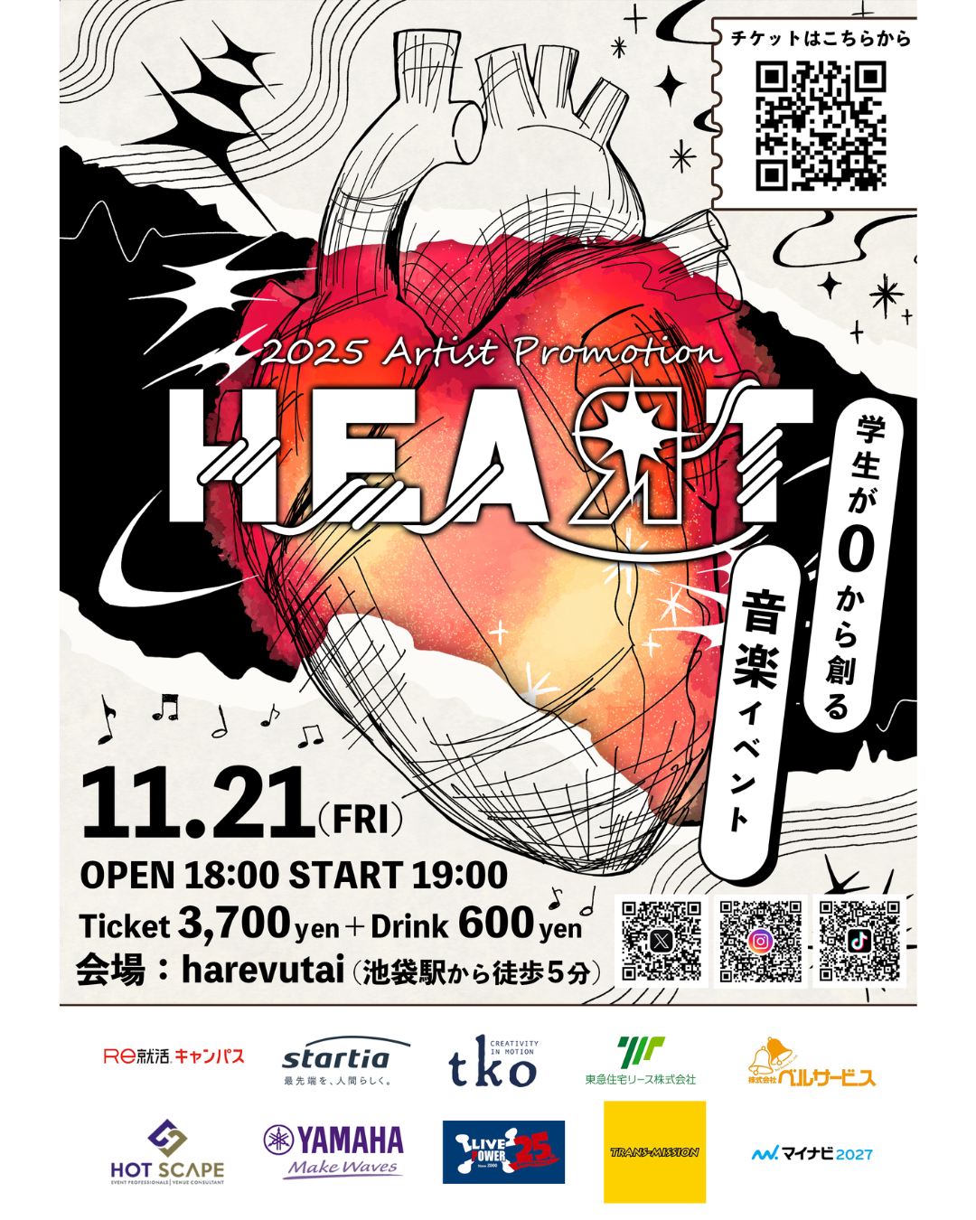 株式会社ホットスケープは、昨年に引き続き、産業能率大学 アーティストプロモーションが主催するライブイベント「2025 Artist Promotion HEART」に協賛いたします。